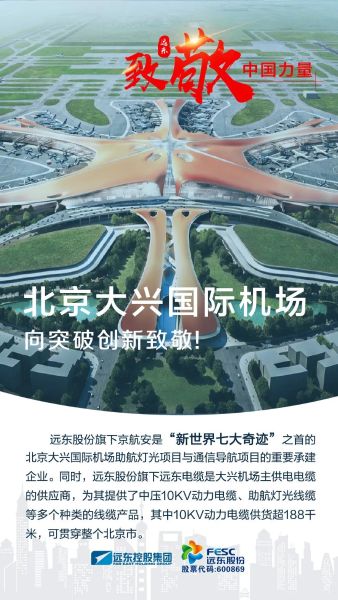 遠東股份智能纜網(wǎng)板塊持續(xù)完善全品類產(chǎn)品布局,深耕清潔能源、智能電網(wǎng)、智能制造、智慧交通、綠色建筑、數(shù)字通訊、海洋工程等行業(yè)。遠東為天宮二號、核電華龍一號、白鶴灘水電站、港珠澳大橋、北京大興國際機場、昌吉-古泉±1100千伏特高壓直流輸電工程、中國尊等多項國家重器工程提供核心產(chǎn)品與技術(shù)支持。